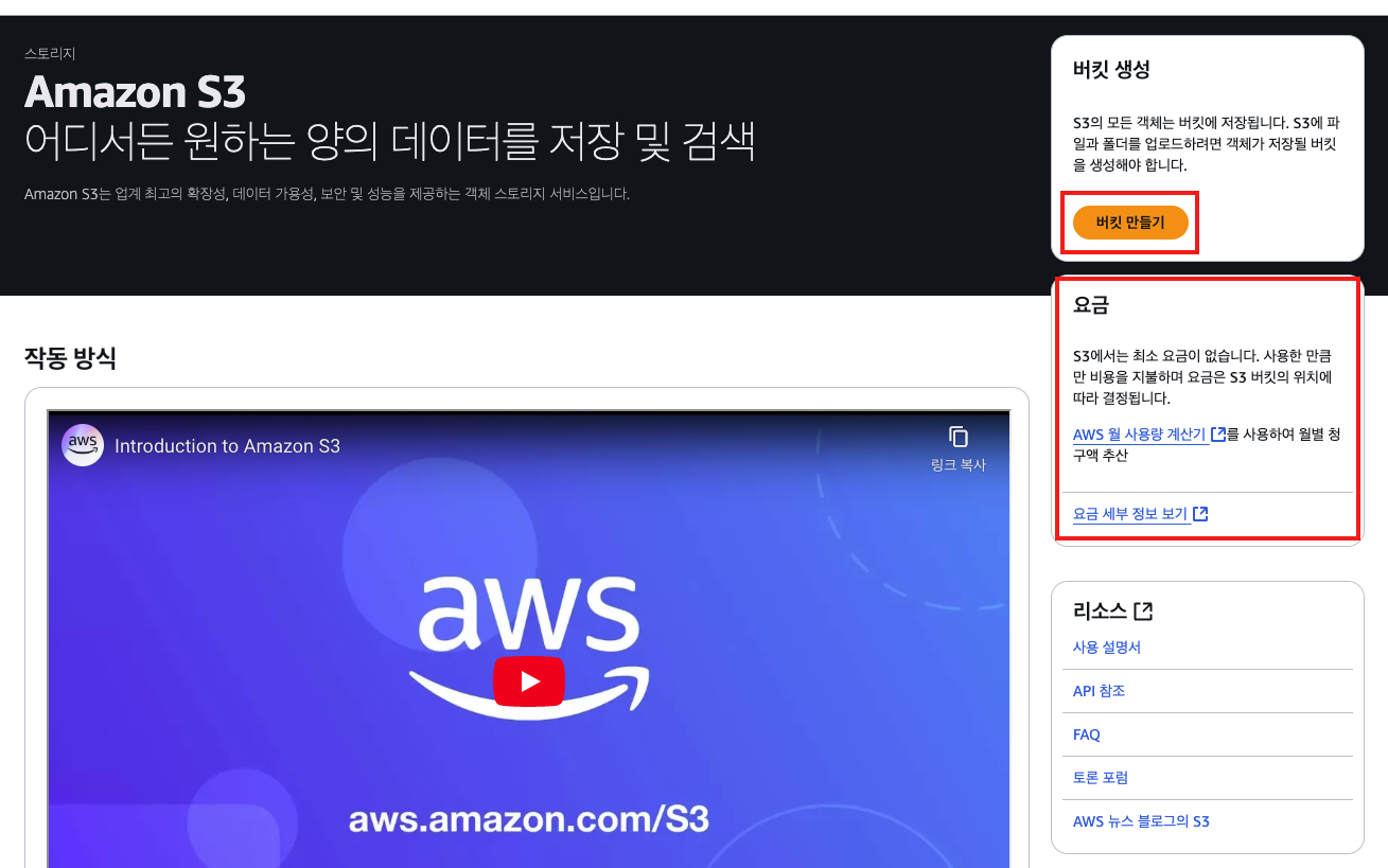 1. s3 용어2. s3 버킷 생성 프로젝트 진행도중 이미지를 저장하고 관리해야할 일이 생겨서 AWS의 s3 시스템을 사용해보도록 하였습니다. 1. s3 용어 1) 버킷객체를 저장하는 공간 2) 객체이미지나 동영상 같은 파일 3) 버킷명유일한 이름 4) 객체 키객체 식별자 (모든 객체가 하나씩 가짐) 2. s3 버킷 생성본격적으로 aws 콘솔에 접속해서 버킷을 생성해보도록 하겠습니다. s3 서비스는 사용한만큼 요금이 지불되기 때문에 현재 사용중인 프리티어 기준에 맞게 이미지 용량을 사용할 생각입니다. 버킷 이름 규칙에 맞게 이름을 지정하고 넘어가줍니다. 다른 값들은 추가로 건들이지않고 테스트를 위해 태그를 하나 생성해주었습니다. 버킷이 잘 만들어진 모습을 볼 수 있습니다. 이제 버킷을 들어가서 이미지..