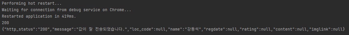 {"http_status":"200","message":"값이 잘 전송되었습니다.","loc_code":"","name":"","regdate":"","rating":"","content":"","imglink":""}